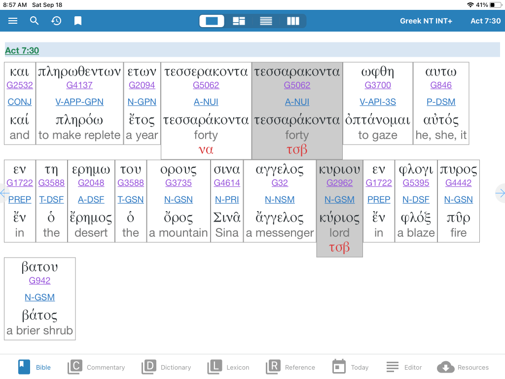 If we look at Acts 7:30 in the New Testament Greek manuscripts, we can see the Greek word is Kurios, Strong’s G2962, just as is used for the name Yahweh in the Greek Septuagint.