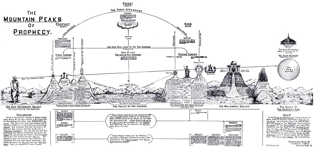 The concept that the prophets never saw the “age of grace” nor prophesied about it, is another clue that this is pure deception. In this chart to the left, the prophets are shown seeing the cross, then only seeing straight to the antichrist, never being able to see the “valley of the church” or the “rapture” of the church. Anyone who believes a small part of this ideology believes the whole theology, even if they are ignorant of some parts.