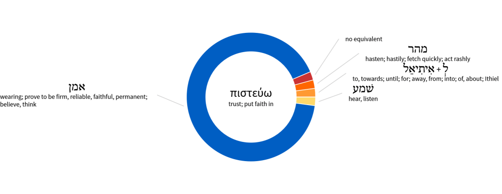 The first Hebrew word that aligns with “pisteuo” is “Aman”. We see the essence of the meaning of this word is trustworthy, confirmed, reliable and trust to do a thing.