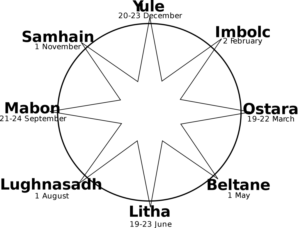 The days on the left are the festivals of the nations celebrated for thousands of years and include modern day Easter (after the goddess Eostre or Ostara), Christmas (Yule), Samhain (all saints day and Halloween), Litha ( St. John the Baptist day). There is also May day with the May “pole” complete with streamers. It is all disgusting when one researches the meanings of all of the days that are involved in sun worship.